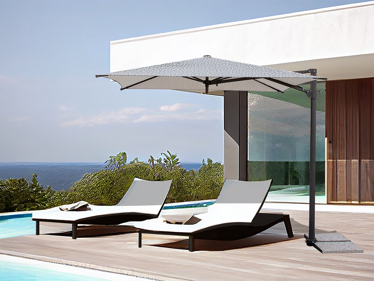 Pixel è una linea di ombrelloni di design con tessuto stampato digitale, disponibile in varie forme e dimensioni per molteplici necessità.
